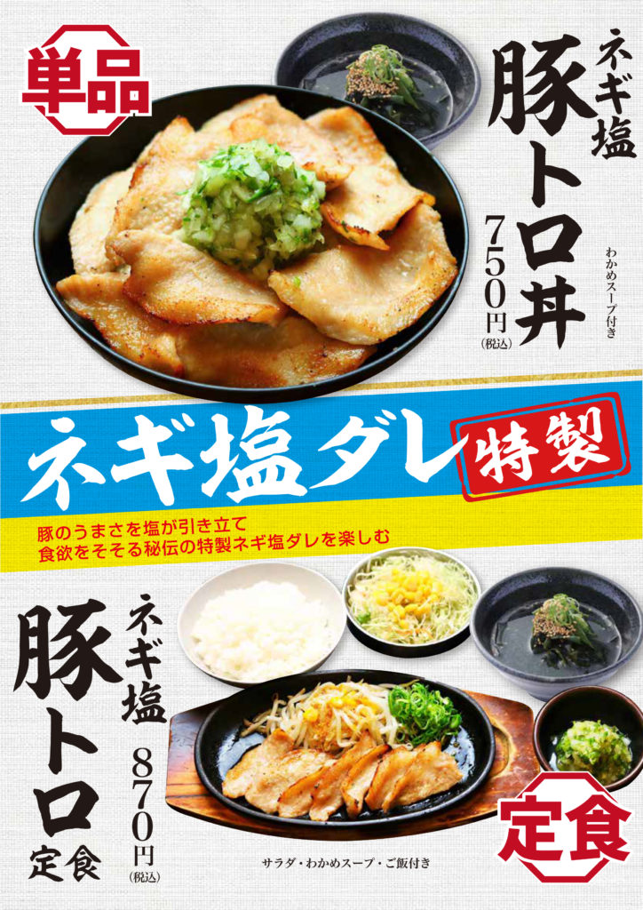 『ネギ塩豚トロ丼・豚トロ定食』販売スタートです!